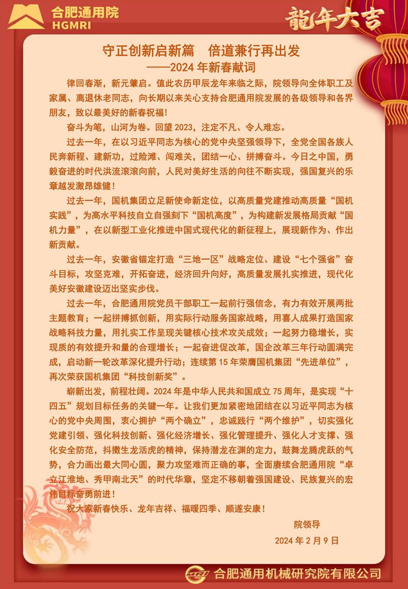守正創(chuàng)新啟新篇 倍道兼行再出發(fā)——2024年新春獻(xiàn)詞